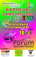 Unsere nächsten Termine: Karneval 2026 am Samstag den 14.02.2026 Der Karten-VVK beginnt Samstags vier Wochen vor der jeweiligen Veranstaltung. Bitte bezahlt die Eintrittskarten immer in bar da Kartenzahlung in den VVK-Stellen nicht möglich ist. |